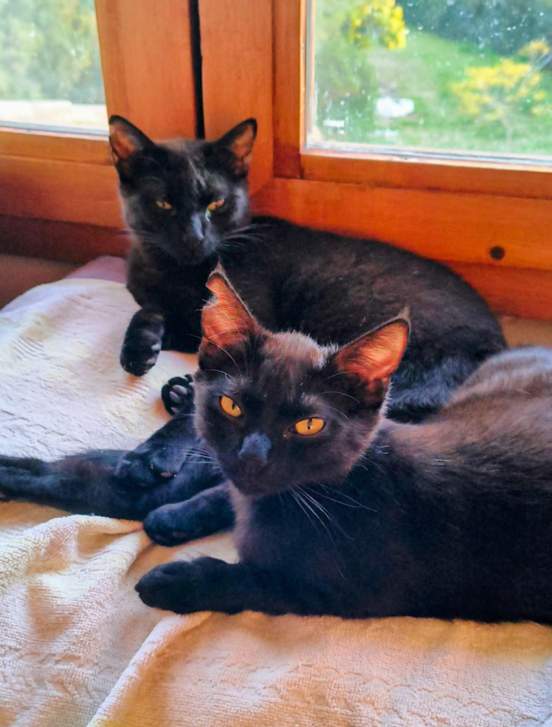 Aún no tengo 8 meses, me abandonaron de cachorrita en la calle, pero soy muy sociable y cariñosa, y estoy buscando un hogar junto con mi compañera de juegos, Boni, que es suave como la seda, negrita como yo, sólo tiene 3 meses y es muy dulce.