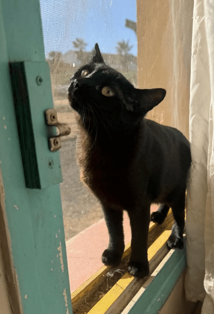 Soy Pía y nací en la calle. Estoy aprendiendo a confiar en las personas — soy cariñosa y me gusta sentarme en el regazo, pero todavía necesito un poco de tiempo para sentirme completamente cómoda con los humanos que no conozco.